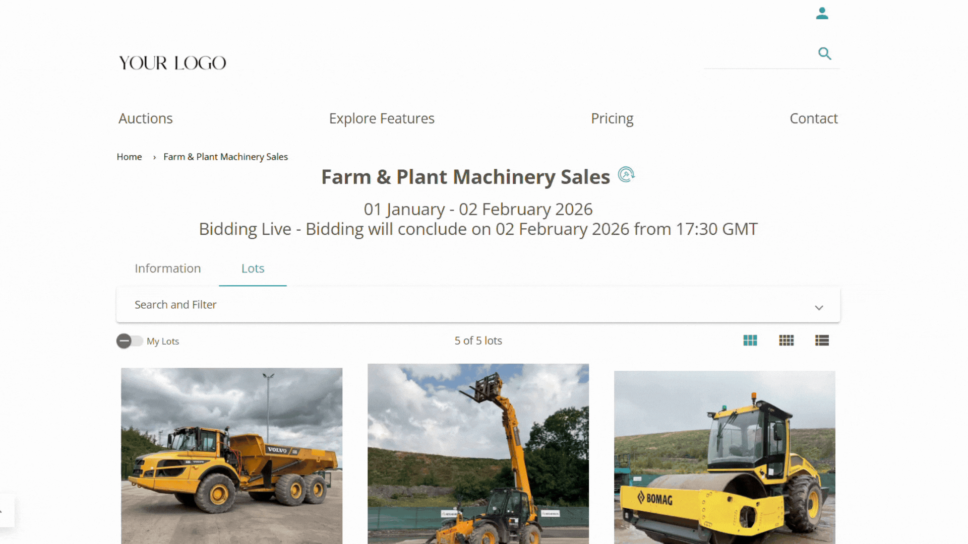 Agricultural & Industrial Auctioneers: Running online auctions for machinery, equipment, vehicles, or industrial assets — and requiring a professional auction platform that reflects your credibility, not a third-party marketplace.