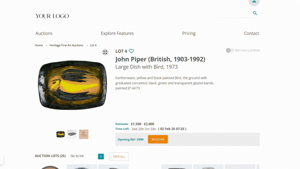 Built specifically for the Fine Art, Antiques & Collectables sector, iRostrum enables auction houses, galleries, and specialist dealers to run beautifully presented, compliant online auctions under their own brand — with the flexibility to support different selling models as their business evolves.